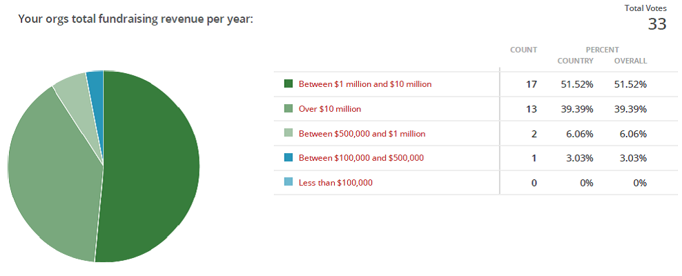 Firstly, here are the results of the last question, the size of the fundraising programs answering the questions: