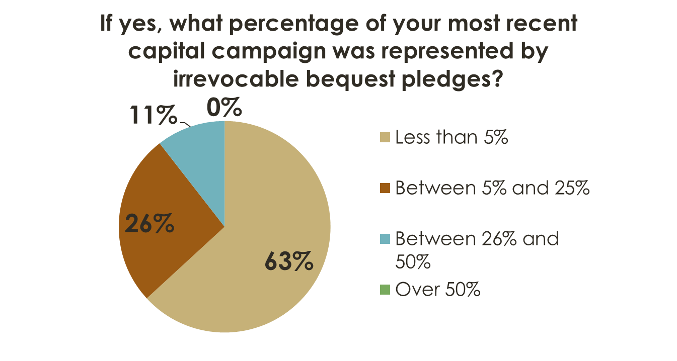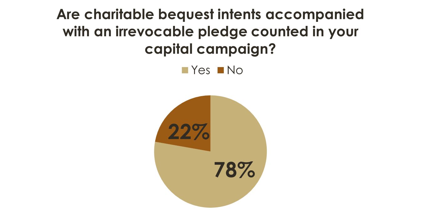 I would like to see this at 100% YES but at least this tells us that not every organization will use the so-called “irrevocable bequest” to pad their campaign numbers.  Bottom line: campaigns need the flexibility to include irrevocable bequest intents as long as reasonable age guidelines are used (i.e. over age 65 or 70 or older!) and this is not overly relied upon (will land your org into not welcomed litigation).