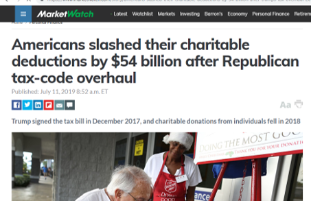 Read the headline carefully – Americans slashed their “charitable deductions” by $54 billion after Republican tax-code overhaul.  Click the picture if you want to see the story.